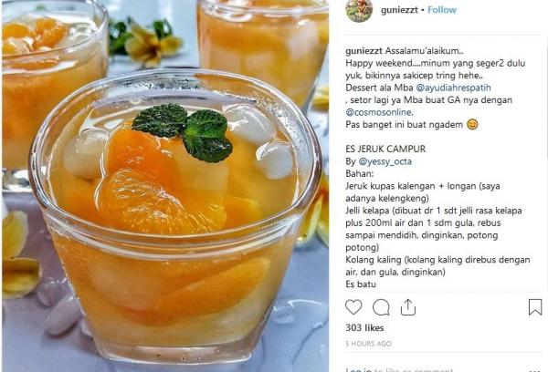 Bentuknya menggiurkan karena di dalamnya terdapat berbagai buah-buahan seperti jeruk dan kolang kaling. Untuk membuat minuman sehat ini sangat mudah dna membuatnya tidak sampai lima menit.