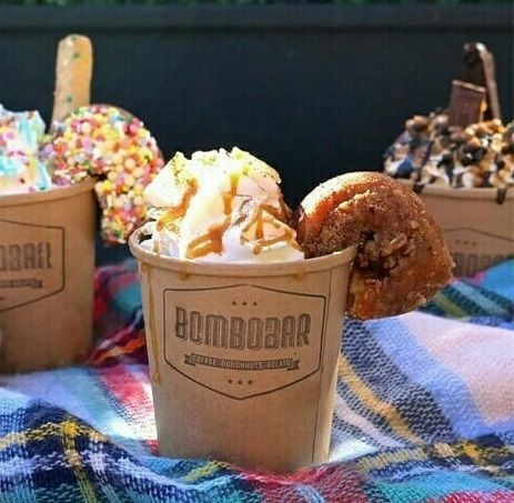 Gelato, donut, dan minuman dalam satu wadah