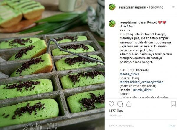 "Kue yang satu ini favorit banget, manisnya pas, masih tetap empuk walaupun sudah dingin, topingnya juga bisa sesuai selera. Ini masih pakai cetakan jadul, tapi Alhamdulillah bentuknya tidak terlalu mengecewakan, kalau rasanya pastinya enaak banget," tulis Instagram @resepjajananpasar, dikutip Selasa (3/9/2019).