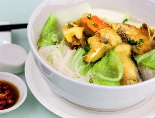 Makan siang yang sehat dan populer di Singapura adalah fish bee hoon soup. Sup ini lezat, karena kuah kaldunya ditambah dengan peterseli China dan bawang goreng. Sup ini disajikan dengan sepiring kecil cabai merah segar. Makan siang dengan fish bee hoon soup sangat bernilai gizi tinggi, karena dapat mencegah kanker. Fish bee hoon dijual di sepanjang jalan dengan harga yang sangat terjangkau.