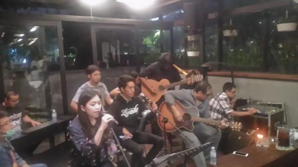 Suasana ruangan outdoor resto berkonsep coffee and eatery yang berada di lantai dasar Gedung iNews.di Center, Kebon Sirih, Jakarta Pusat sudah dipenuhi oleh tamu undangan. Perayaan ini juga dihadiri oleh Chairwoman MNC Group, Liliana Tanoesoedibjo beserta putrinya Jessica Tanoesoedibjo.